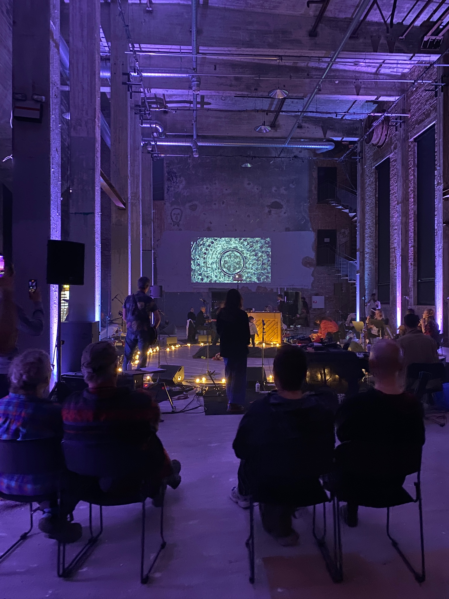 They act as a creative human swarm rather than a group of individuals. The idea: how to achieve the dissolution of physical, mental, and genre boundaries by creating something together. The happening is the outcome, there will be no product to sell. Instead, the process of producing art and live music collectively and being the productive body becomes the actual artwork.