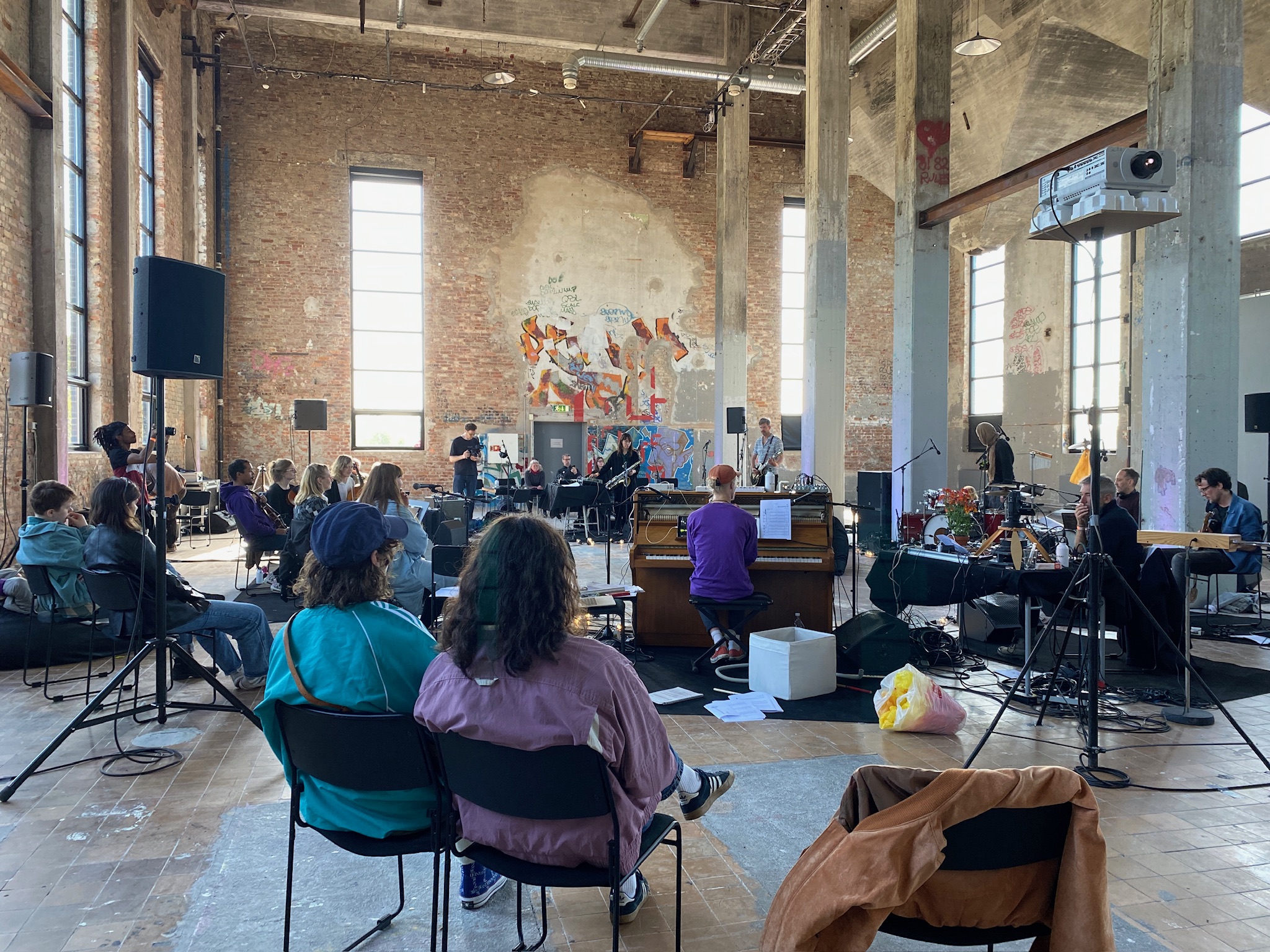 They act as a creative human swarm rather than a group of individuals. The idea: how to achieve the dissolution of physical, mental, and genre boundaries by creating something together. The happening is the outcome, there will be no product to sell. Instead, the process of producing art and live music collectively and being the productive body becomes the actual artwork.